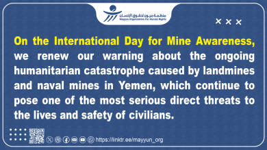 Aden 04/04/2026 On the occasion of the International Day for Mine Awareness, Mwatana for Human…