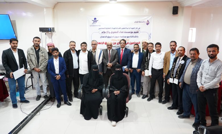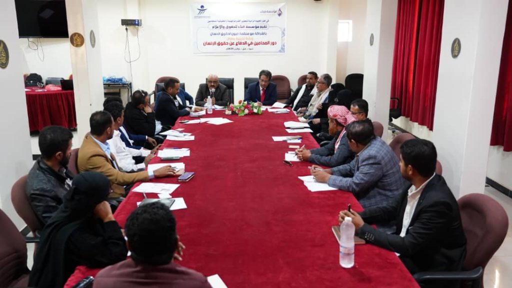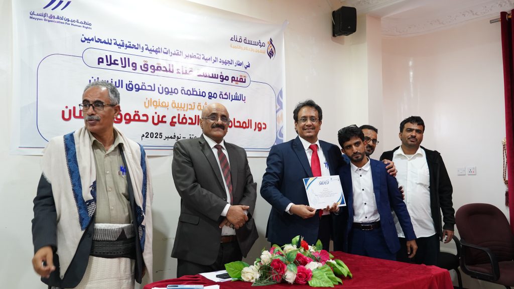 Mayyun Organization for Human Rights, in partnership with the Qana Foundation for Rights and Media in Shabwa Governorate, organized today a training workshop titled “The Role of Lawyers in Protecting Human Rights,” with the participation of 15 male and female lawyers from the governorate.