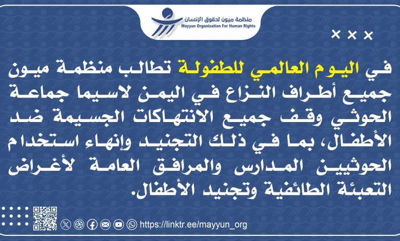 تأتي الذكرى السنوية لليوم العالمي للطفل، الذي يُحتفى به في العشرين من نوفمبر، اليوم الذي تم فيه اعتماد اتفاقية حقوق الطفل لتذكرنا بالثمن الفادخ الذي يدفعه الأطفال، حيث تعاني الطفولة  في اليمن من أزمة إنسانية وحقوقية غير مسبوقة، جعلتها من بين الأسوأ عالمياً، حيث ينشأ غالبية الأطفال في كنف الفقر والنزاع، مما يجعلهم الفئة الأكثر هشاشة وتأثراً.