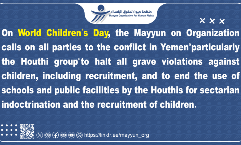 The Mayyun Organization welcomes the launch of the “National Plan for Child Protection 2026–2029” by the internationally recognized Yemeni government, in partnership with UNICEF, under the slogan “Childhood Without Protection… A Future Without Safety.” We call for this plan to serve as an effective framework for strengthening the protection of children from all forms of violence, abuse, and exploitation.