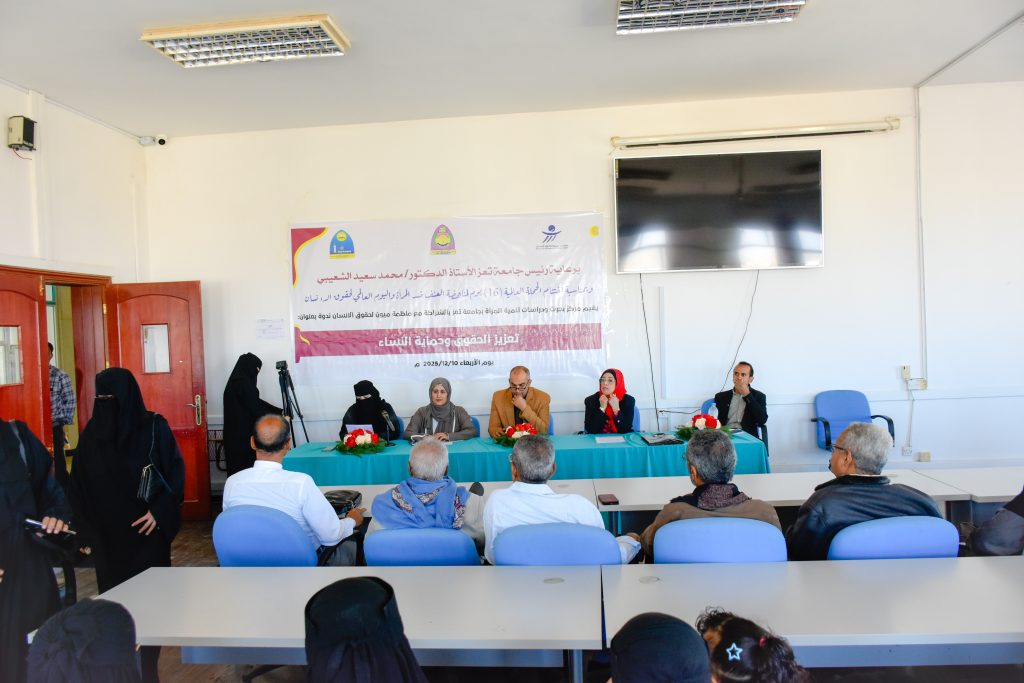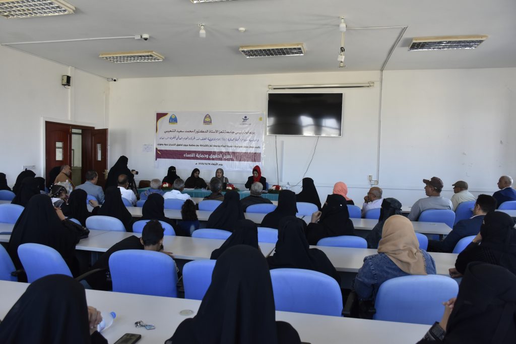 جامعة تعز وميون الحقوقية تقيمان ندوة تعزز الوعي بالحقوق والحماية القانونية للنساء.