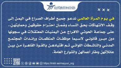 Aden: March 8, 2026 On the occasion of International Women’s Day, Mayyun Organization for Human Rights extends its respect and…